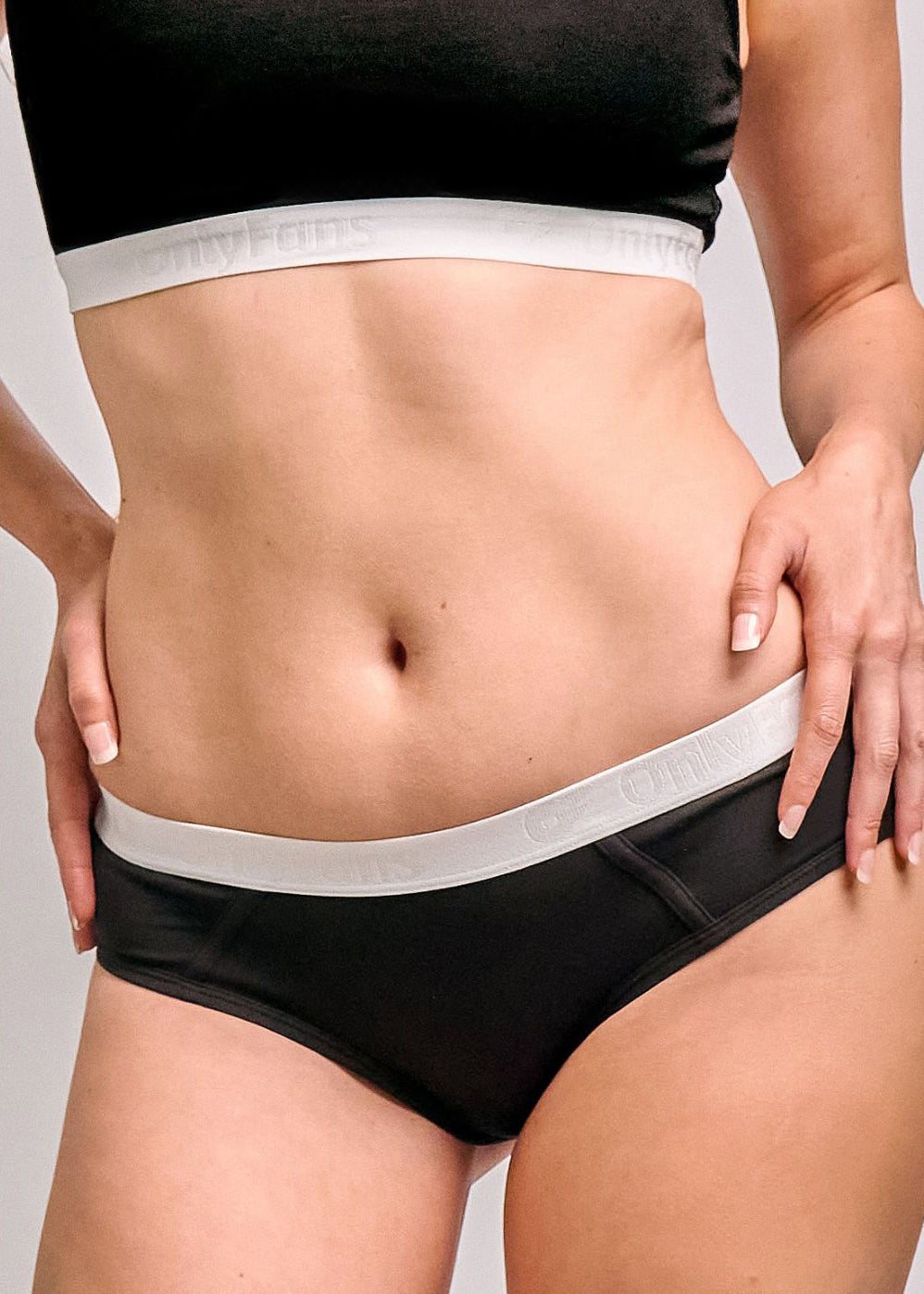 OF x Spice Rack Collab collection. Black hipster undies with OF logo screen printed back. White logo elastic waistband. Low Rise Hipster Panty. Comfortable soft fabric.
